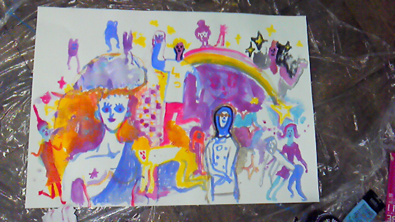 テーマも何も考えず描いたので(タイトルはあとづけです)ふわふわした感じの作品ですが、描いた後はスッキリしました。製作、展示期間が一日だったのが残念でしたが、好き勝手やらせてもらいました。